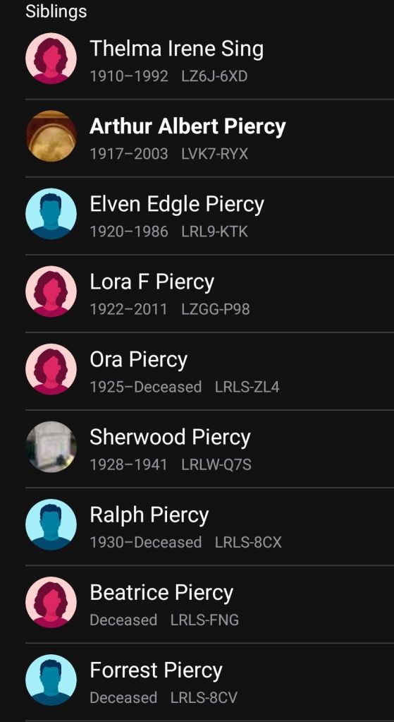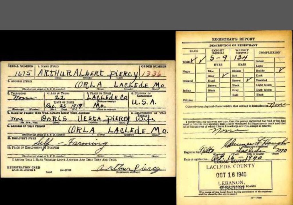 Born in Missouri, to Albert J. Piercy, and Anna May Peterson (1st generation born after father’s immigration from Netherlands), he grew up on a farm, and became a farmer himself. He was the 2nd born of 9 children.