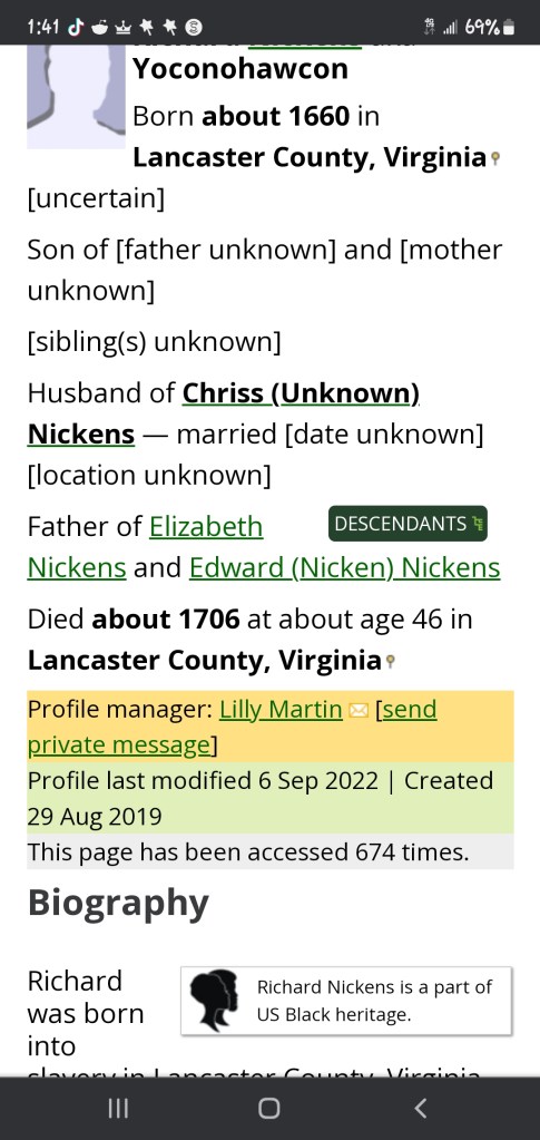 Some of the information I found came from family search, which is a living tree 🌳 and why I started source indexing. There were a lot of people adding and deleting and merging, over and over, and still are. I HAVE FOUND IT LIKE A PRACTICE TREE. Which of course has pros and cons. Pros first, let’s be positive, I love the layout, great to make Gedcom files with, great for source indexing, and so much more. The cons of it is all your work gets unconnected, even when it’s correct, instead of checking sources and merging without deleting, the ancestors shouldn’t be touched. But they are… even to my parents and grandparents. And as to why many these people, I have to still do work on. Grateful to not be alone in this journey, because I’m still learning too. And still building on WikiTree.